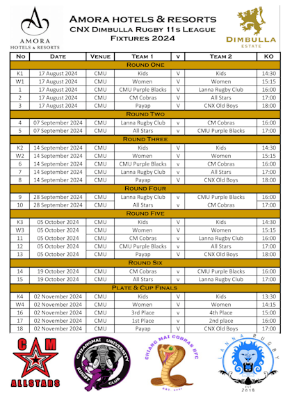 All games will be played at the excellent Chiang Mai University ground & will be livestreamed. Come on down and support grassroots Northern Thai Rugby.